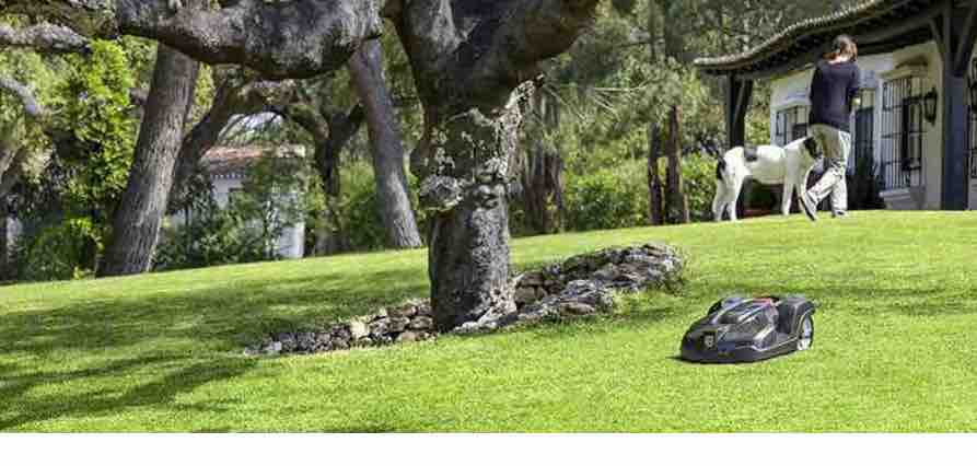 Es un cortacésped que funciona con batería y está diseñado para trabajar de forma in dependiente, con desniveles, hierba mojada y regresa solito a la estación de carga cuando la batería se está agotando para su recarga. Gracias a sus sensores puede sortear cualquier obstáculo y tiene la gran ventaja de ser silencioso cuando trabaja en el jardín